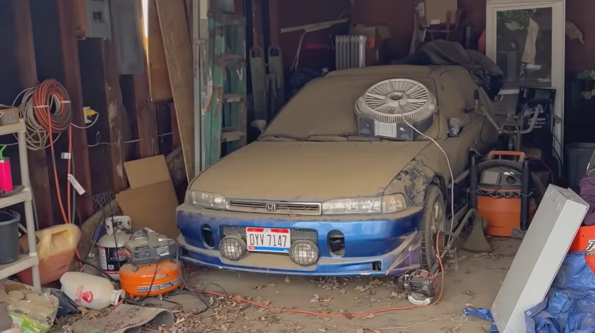 This specific Honda Accord remained stationary for several years while thick layers of environmental grime obscured its custom exterior.