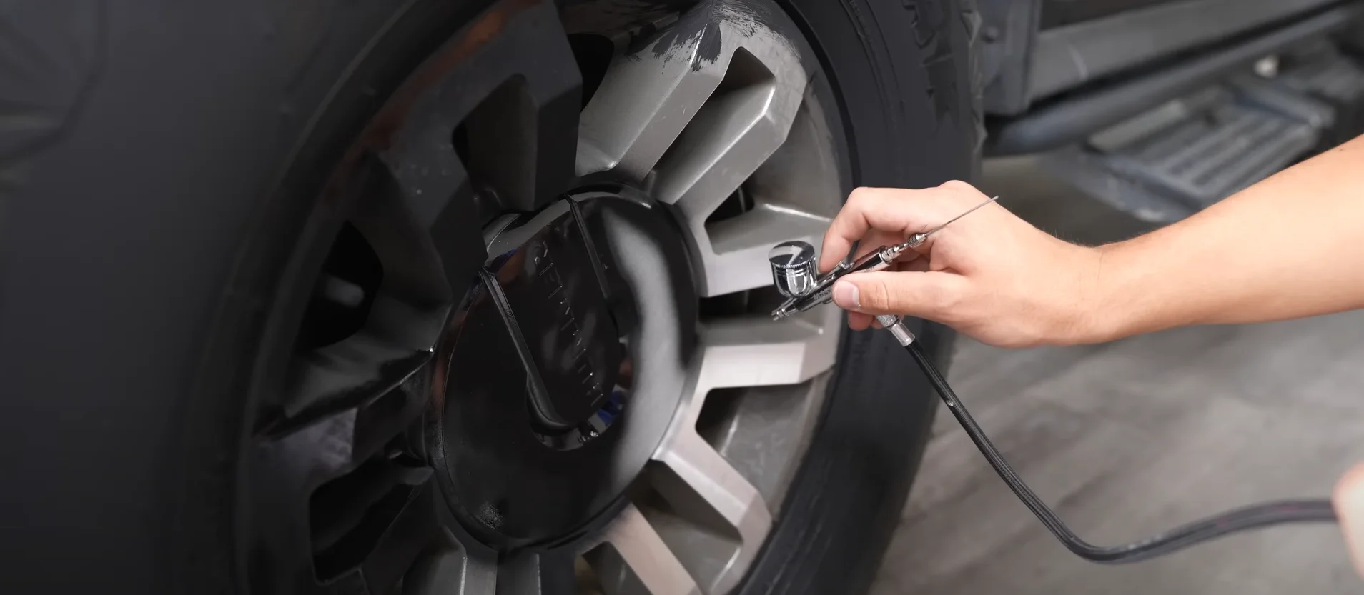 The Hummer got decked out in both an airbrush and a larger spray gun over several hours with multiple coats.