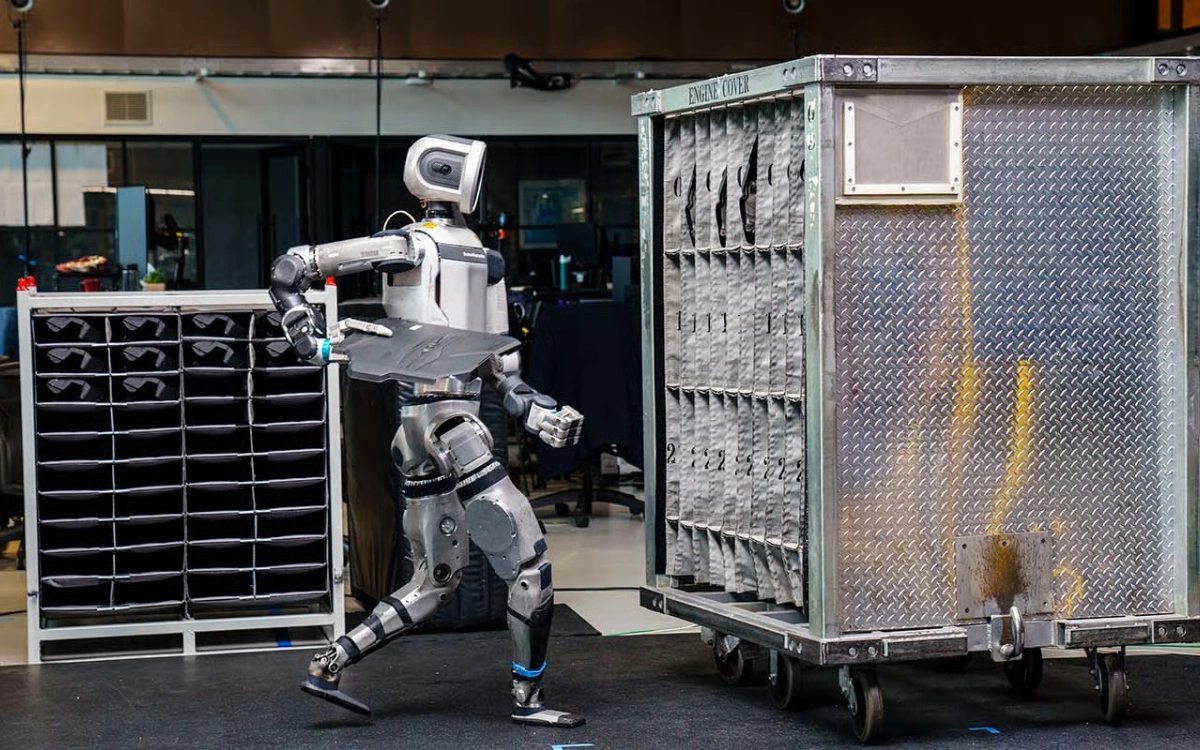Unlike robotic arms and conveyor belt machines, the Atlas robot is built to look and move like a person, able to lift heavy parts and mimic human actions in unpredictable environments.