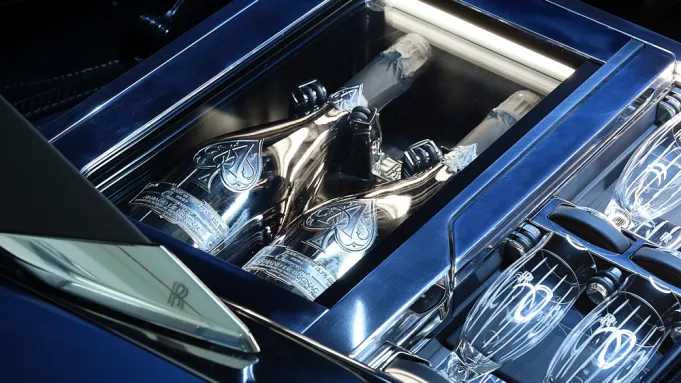 Oh yeah, and the champagne cooler is stocked with bottles of Armand de Brignac in press photos of the car.