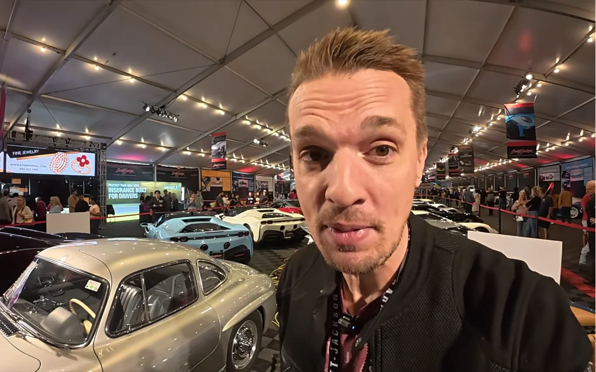 In his video detailing his purchase, Hoover walked around the auction tents and showroom and spotted all sorts of tempting supercars.