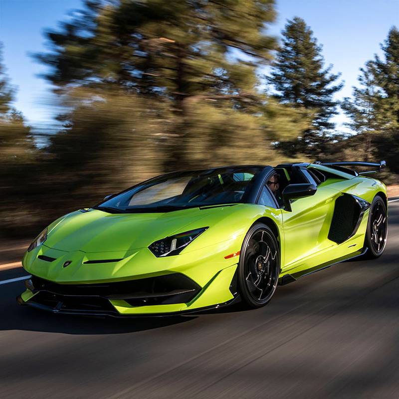 The photo itself showcases a Lamborghini Aventador LP750-4 SV.