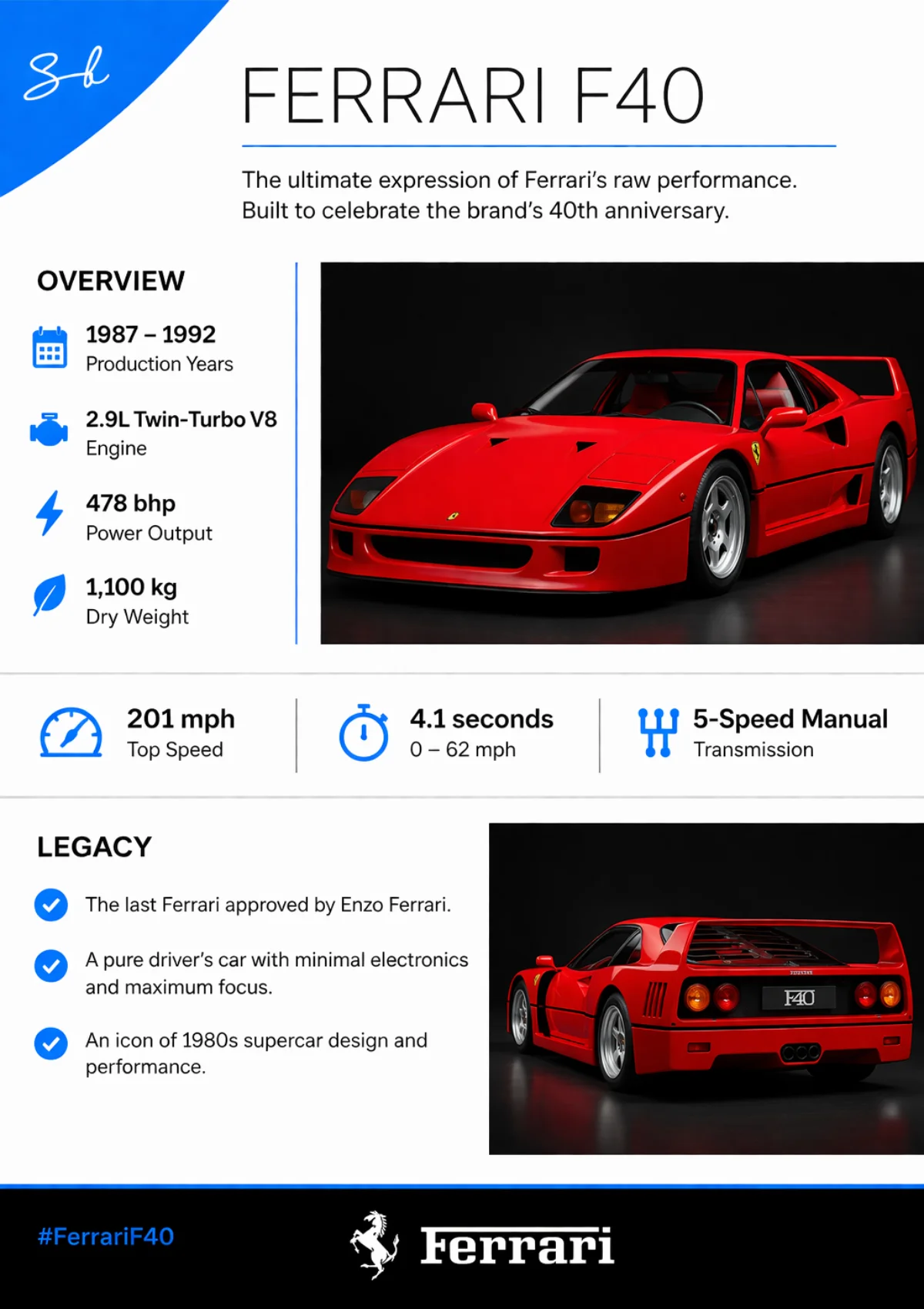 The ‘F40’ is a reference to the supercar celebrating Ferrari’s 40th anniversary.