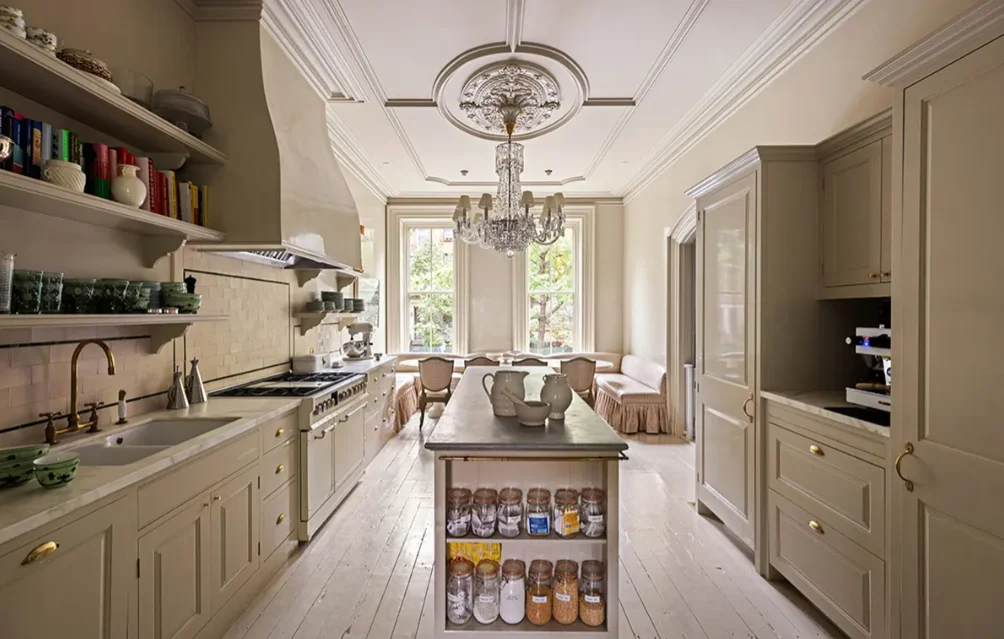 The home draws on three distinct themes – traditional English, modern Brooklyn townhouse, and layered Italian.