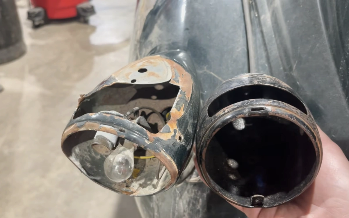One damaged taillight assembly had to be rebuilt using parts from another vintage unit.