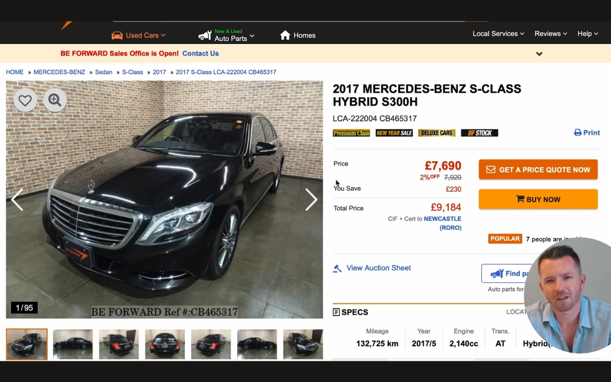 He found a 2017 Mercedes S-Class for under £8,000, or $10,500, which was pretty wild.