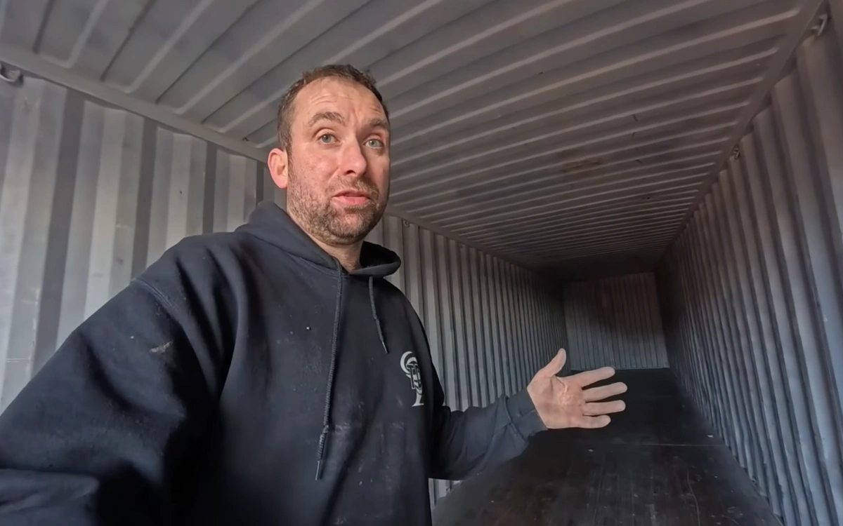 Compared to a standard shipping container, which he also bought, the aircraft offers far more usable width and a shape better suited to being buried.