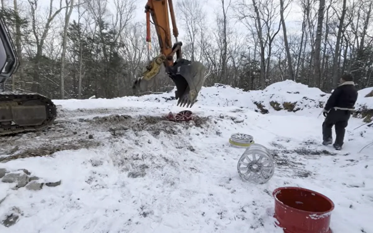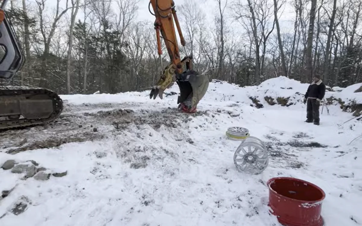After those tests, things got a little more extreme, with the wheels being whacked by an excavator in the snow until they broke into pieces, but even in this somewhat bizarre test, the Chinese-made wheels held their own against the more expensive Bugatti ones.