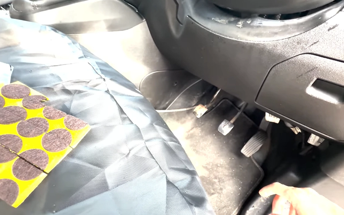Missing rubber pads on the clutch and brake pedals meant an instant fail, so a last-minute Screwfix run and some creative trimming were needed to get things compliant.