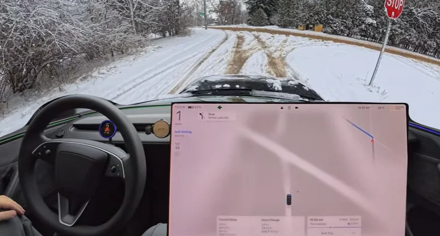 A guy tested out Tesla’s Full Self-Driving (FSD) Mad Max mode on snow-covered roads during a winter weather advisory to see how the technology handled it.