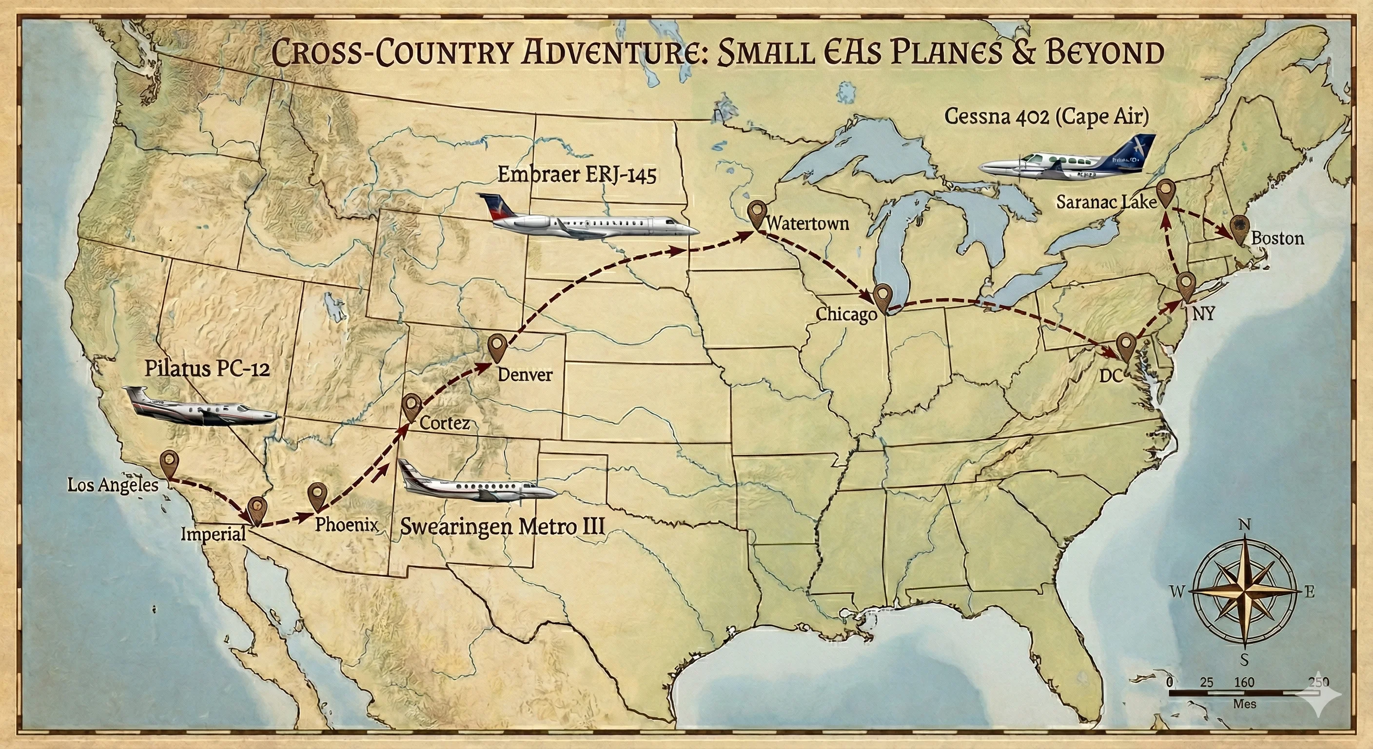 A man tried flying the whole way across the country from Los Angeles to Boston using only the Essential Air Service, and it’s a trip he won’t forget in a hurry.