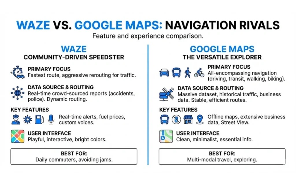 Some drivers swear by Waze for real-time alerts and crowdsourced traffic reports, while others stick with Google Maps for its clean interface and powerful search.