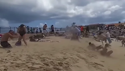 Combined with the beach setting, it creates dramatic scenes that spread quickly online.