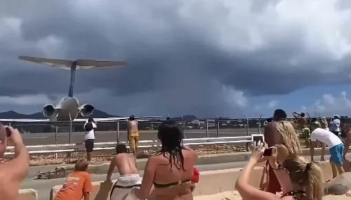 An MD-80 jet blast sends tourists flying at Maho Beach