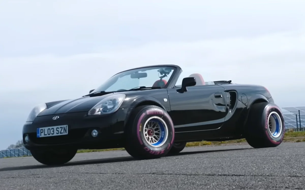 To see whether they can turn a standard road car into a buzzing race machine, these YouTubers bolted F1 tires on a Toyota MR2 and found that not everything is as straightforward when trying to increase your speed.