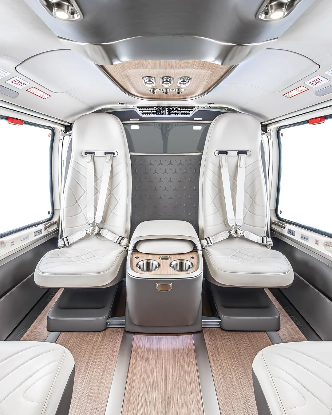 Instead of the stripped-back interiors most people associate with rotorcraft, the space feels more like a luxury Mercedes lounge.