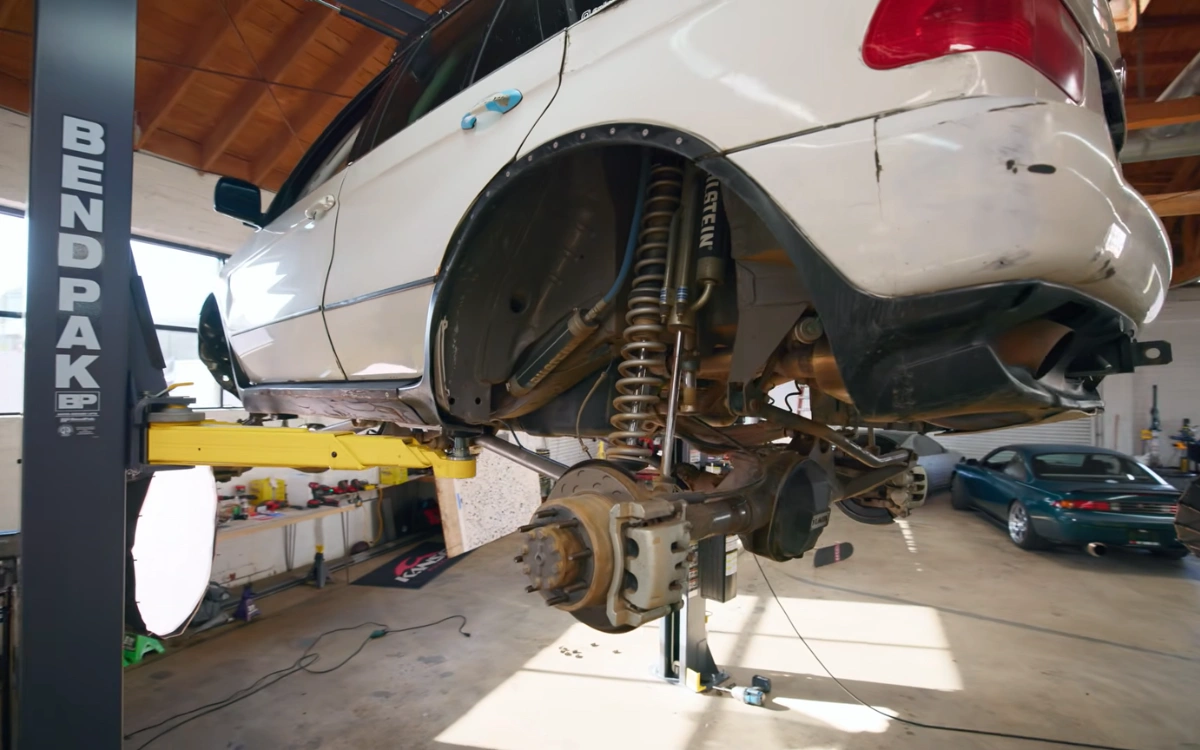 The X5 had been fitted with heavy-duty Ford Super Duty axles, massive 40-inch off-road tires, and a fully custom suspension setup featuring oversized coilovers more commonly seen on race trucks.