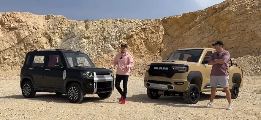 It was a battle of the Chinese duplicates, with the fake Dodge Ram going head-to-head with the fake Land Rover Defender.