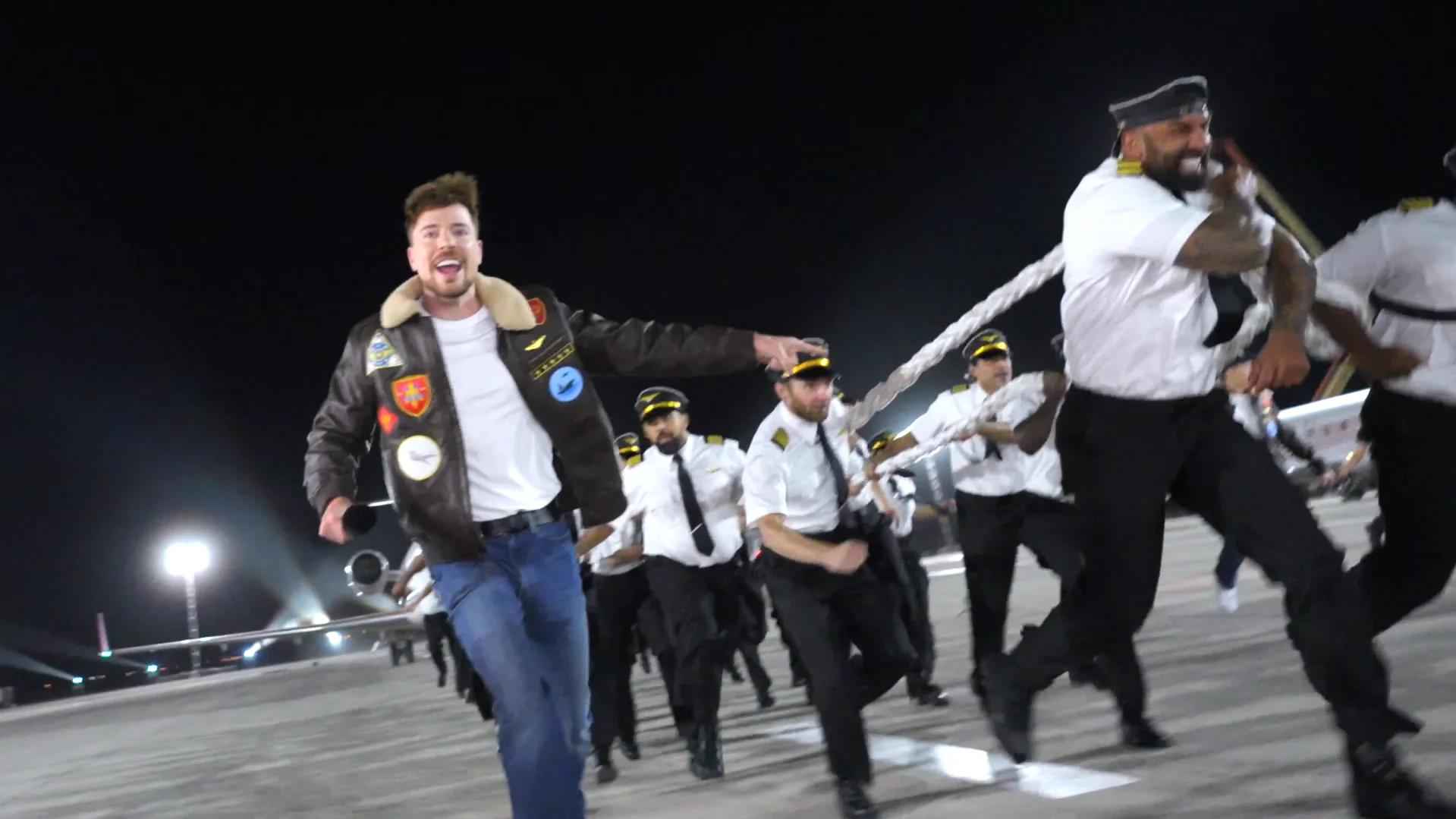 As with a lot of crazy MrBeast videos, this one began with 100 pilots split into teams and ordered to pull a 40,000lb airplane across a finish line, instantly cutting the field down.