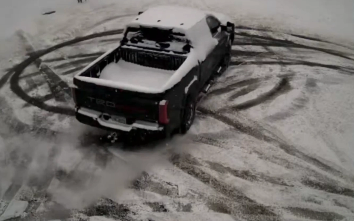 The Joe Gibbs Racing driver posted a video of himself doing snowy donuts in his Toyota Tacoma TRD.