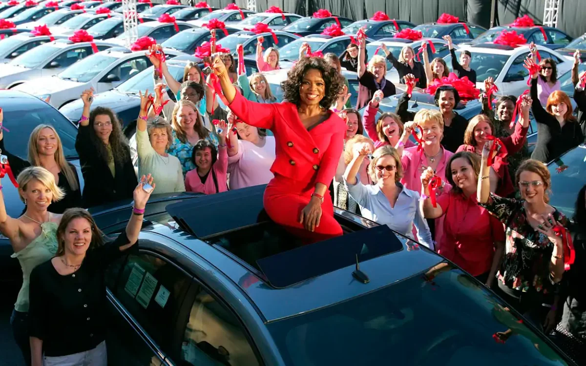 One of The Oprah Winfrey Show’s most famous moments was the star screaming, ‘You get a car, you get a car, and you get a car’, promising each of her audience members a free Pontiac.