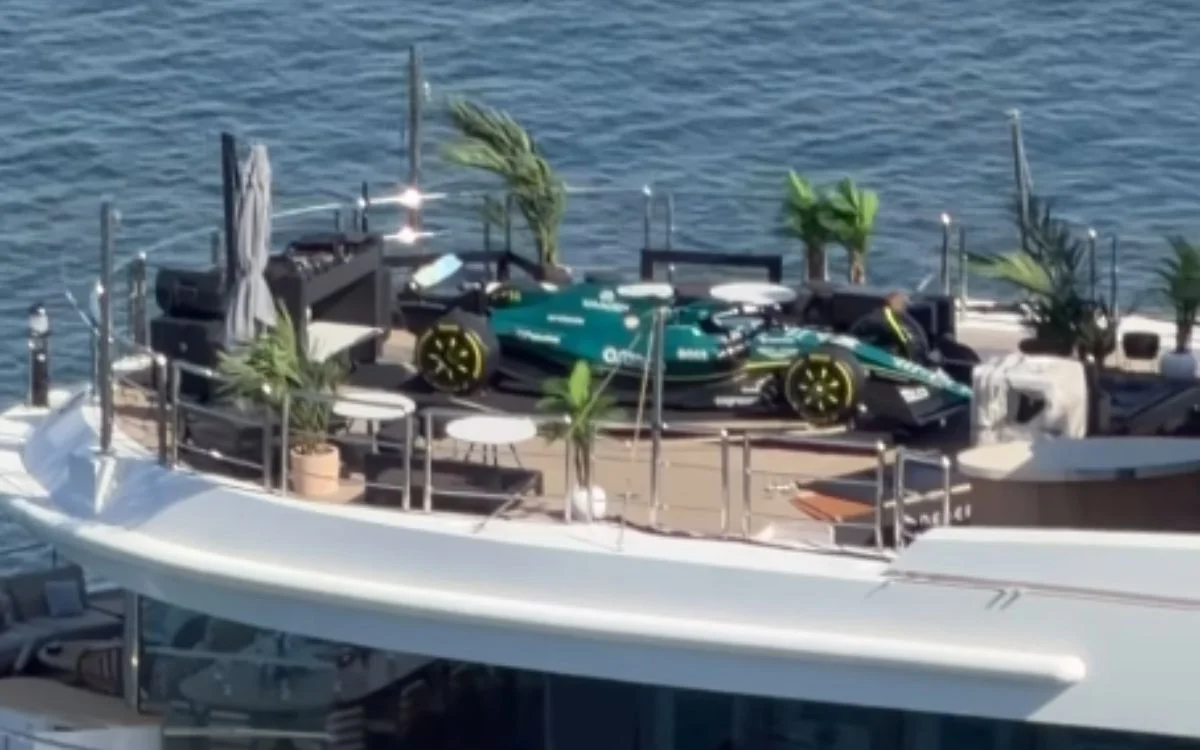 Owner of $55,000,000 superyacht wasn't happy with just the boat so parked an Aston Martin F1 car on the deck