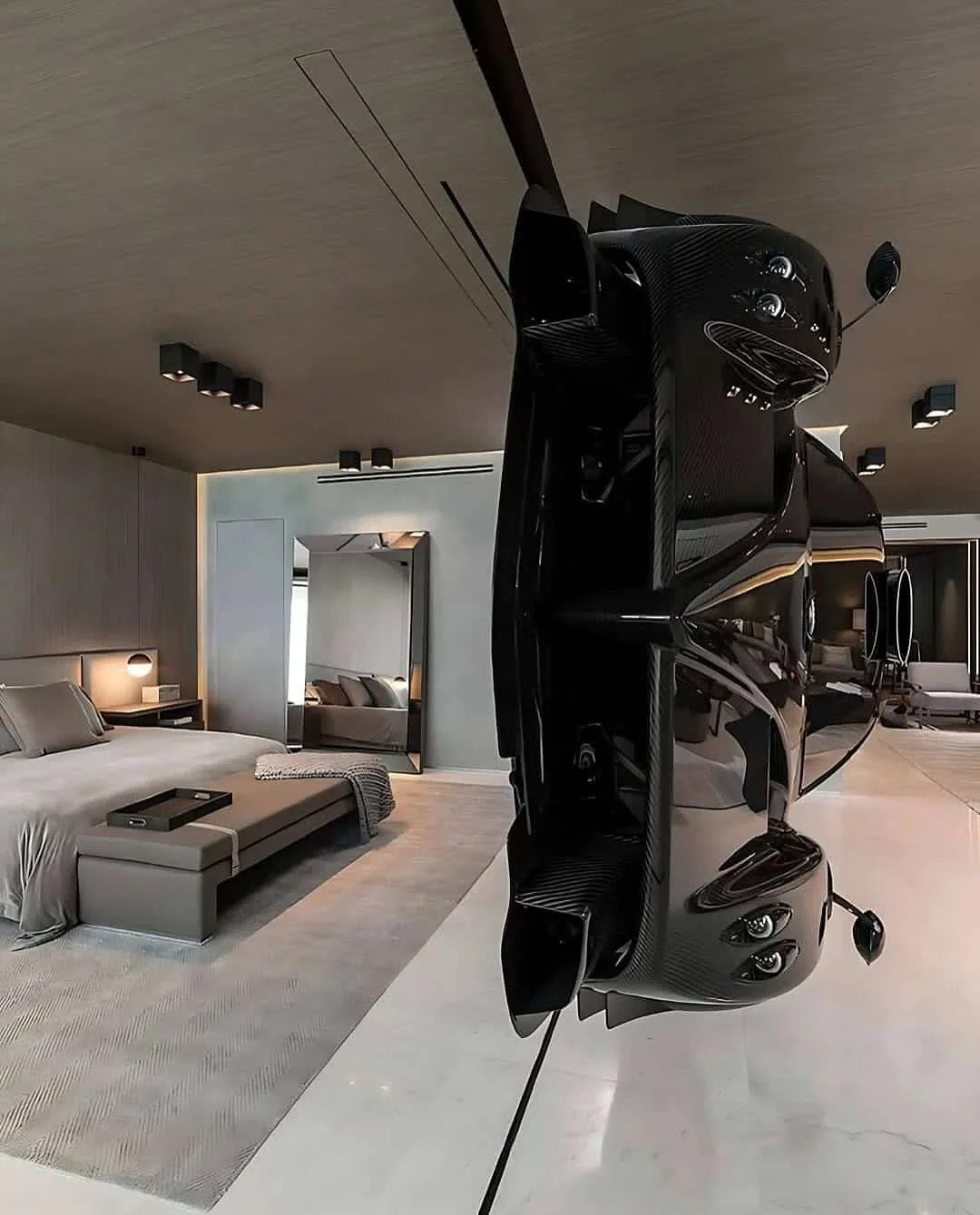 And when we say ‘park’, what we mean is he actually turned his Zonda into a massive installation that also doubles as a room divider to separate his living room from his bedroom.