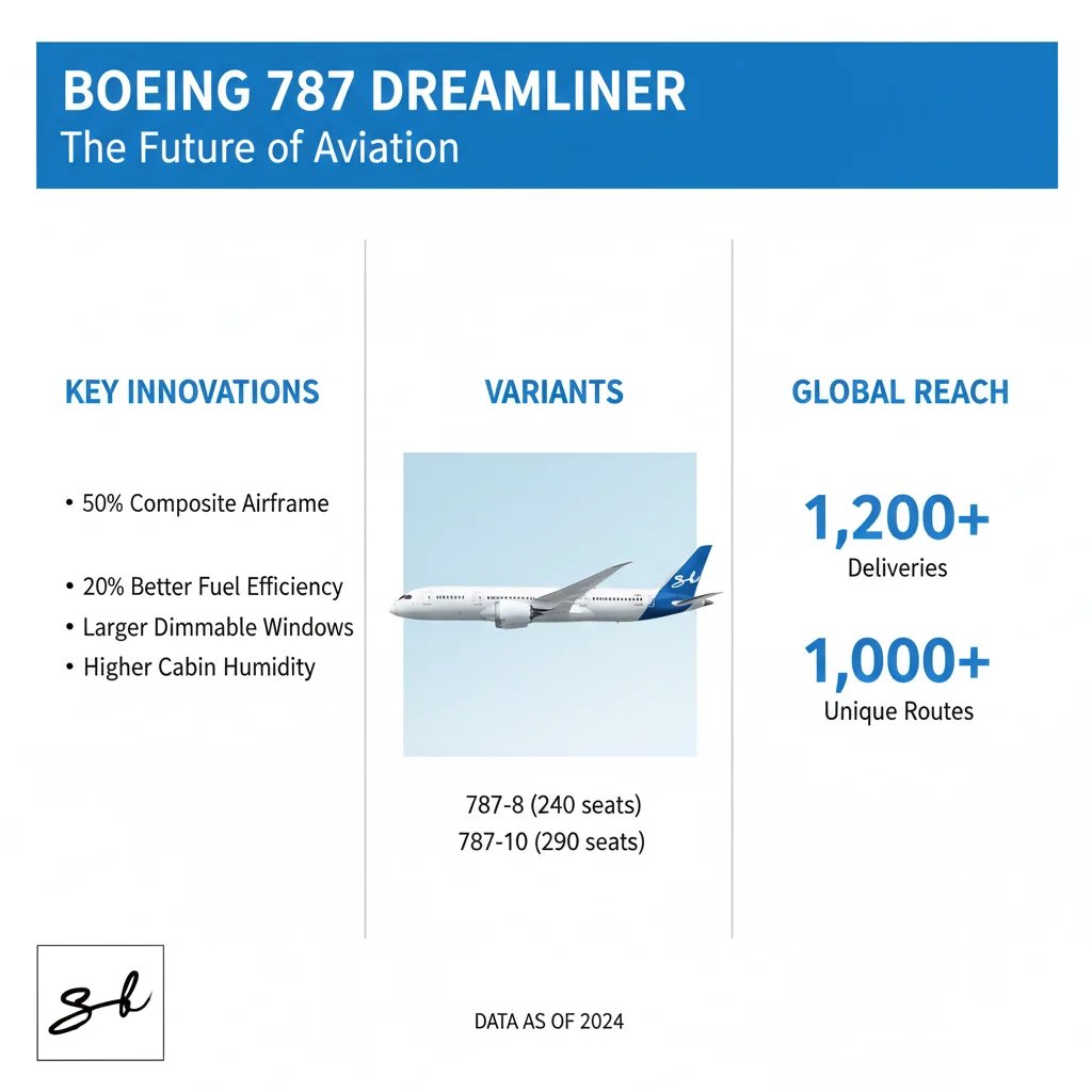 The Boeing 787 Dreamliner first entered service in 2011, and was built for long-haul international and medium-to-long regional routes.