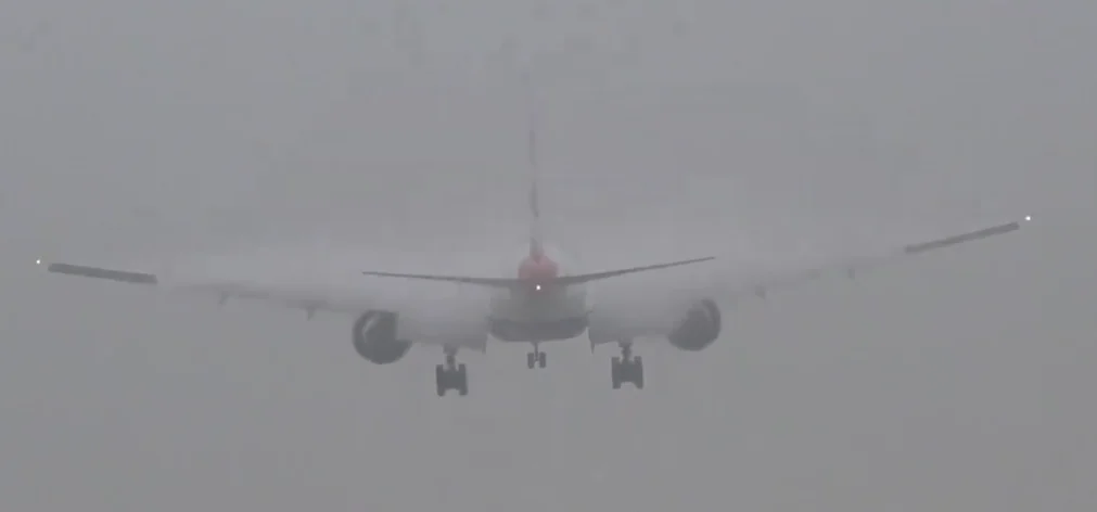 Pilots leave people wondering how they managed to land as video shows landing in very thick fog with near-zero visibility