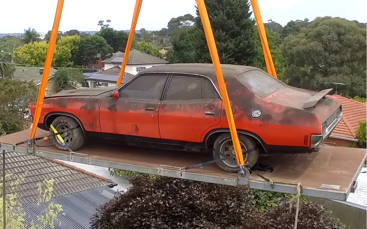 The car in question was a Ford Falcon XA GT Sedan, a very rare find in Australia and one that absolutely deserved a crazy rescue attempt.