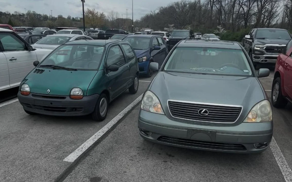Reddit user Conscious_North7965 posted a picture on the r/spotted SubReddit, showing a Twingo parked in a parking lot next to a Lexus.