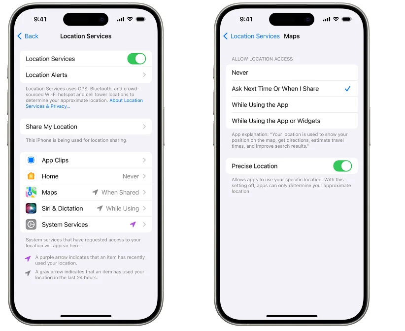 When you download an app, you’ll often be asked if it can track your location, either all the time, when in use, or never, and if you want it to track your ‘precise location’.