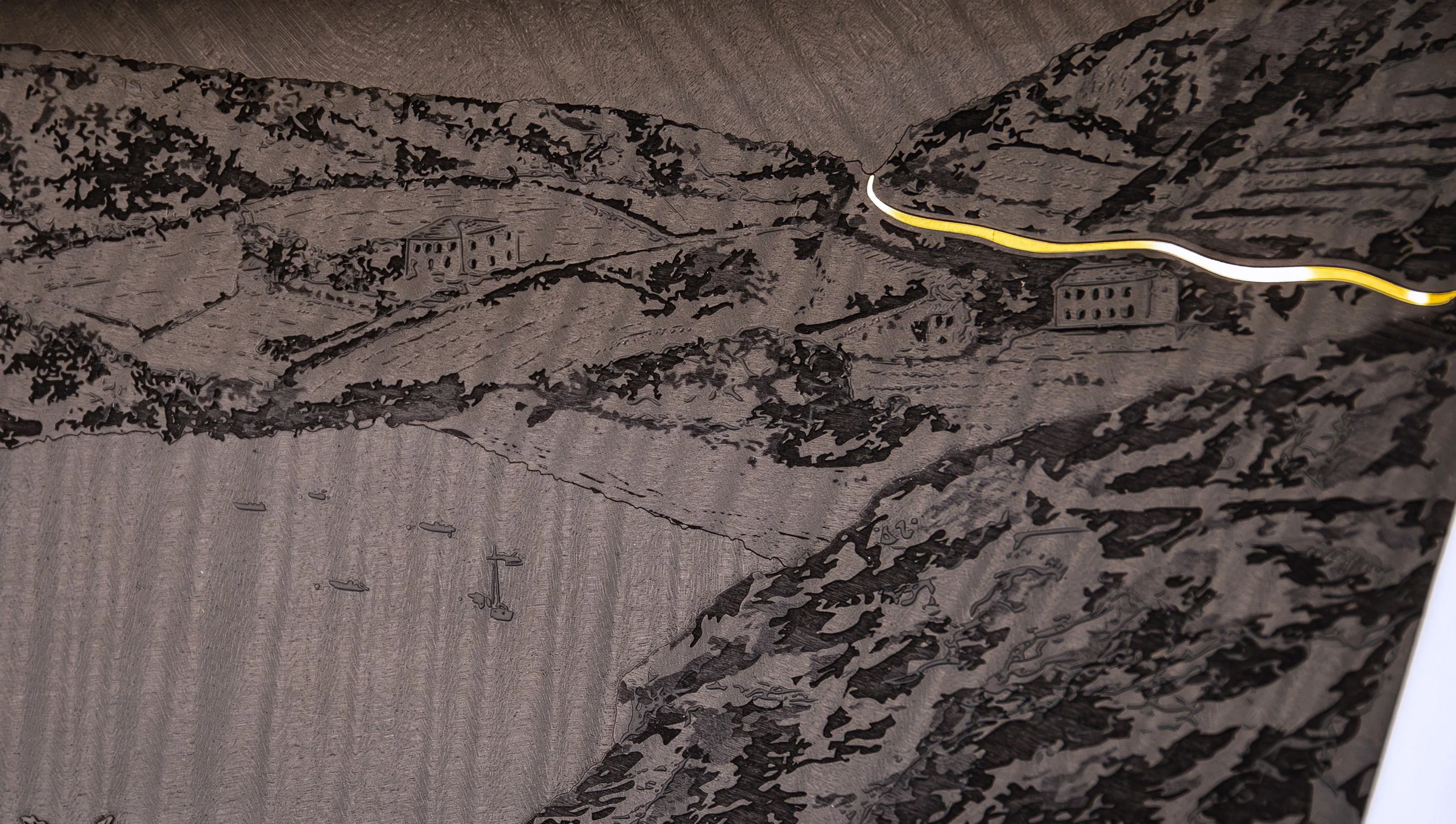 Carved into the wood are landscapes and place names synonymous with the Phantom.