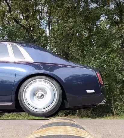 In a video shared to Instagram by car content creator Tudor Bratu, the Rolls-Royce Phantom is shown driving over a speed bump at different speeds.
