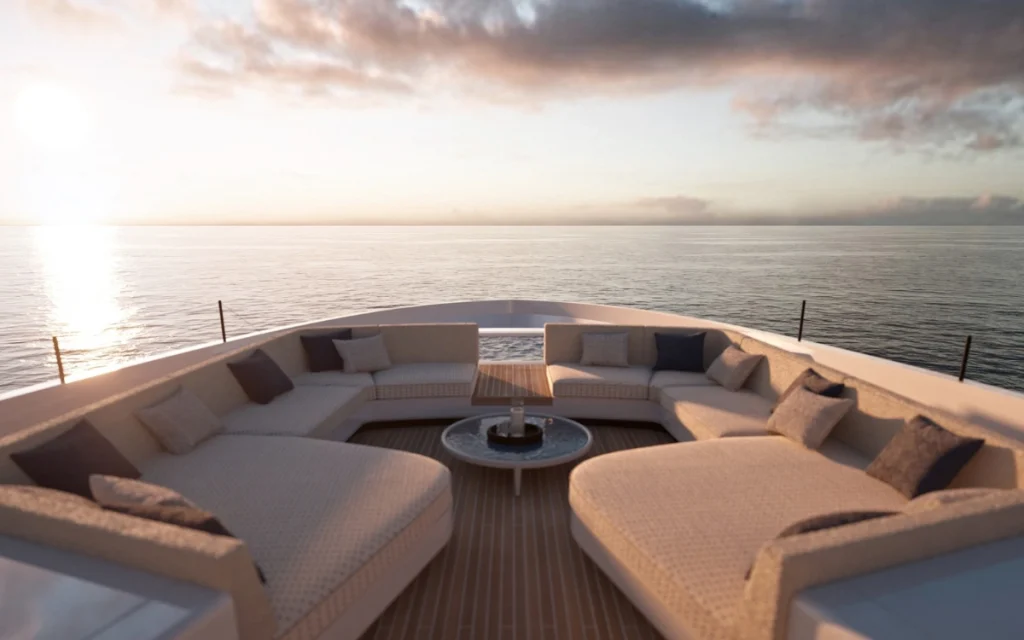 And of course, it’s not a proper yacht without a sun lounge and a jacuzzi, offering panoramic views when underway or at anchor.