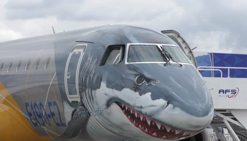 Embraer is a big fan of animal-themed liveries – see their eagle planes for proof – so this toothy plane should come as no surprise.