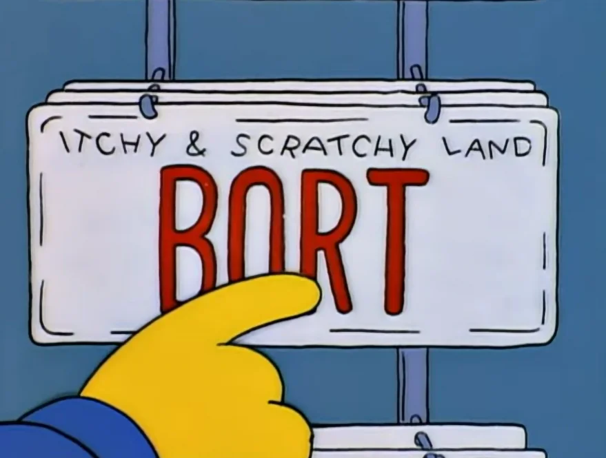 While there, Bart seeks out a souvenir plate with his name on it, but is instead met with one that reads ‘BORT’.