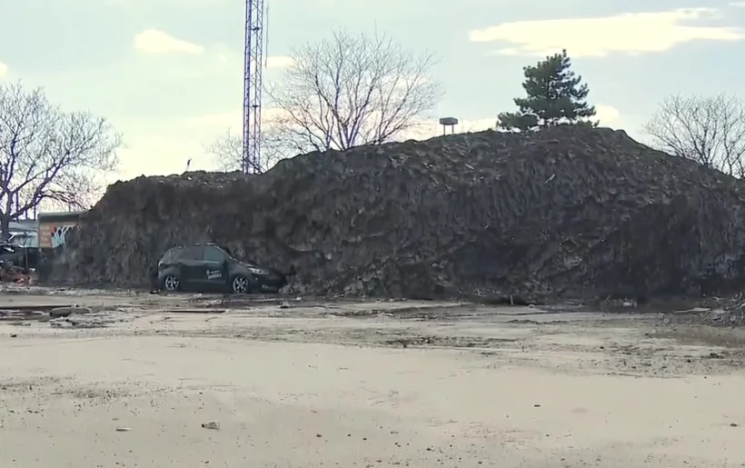 The city is currently reviewing redevelopment plans for the lot where the snow pile sits in Somerville.