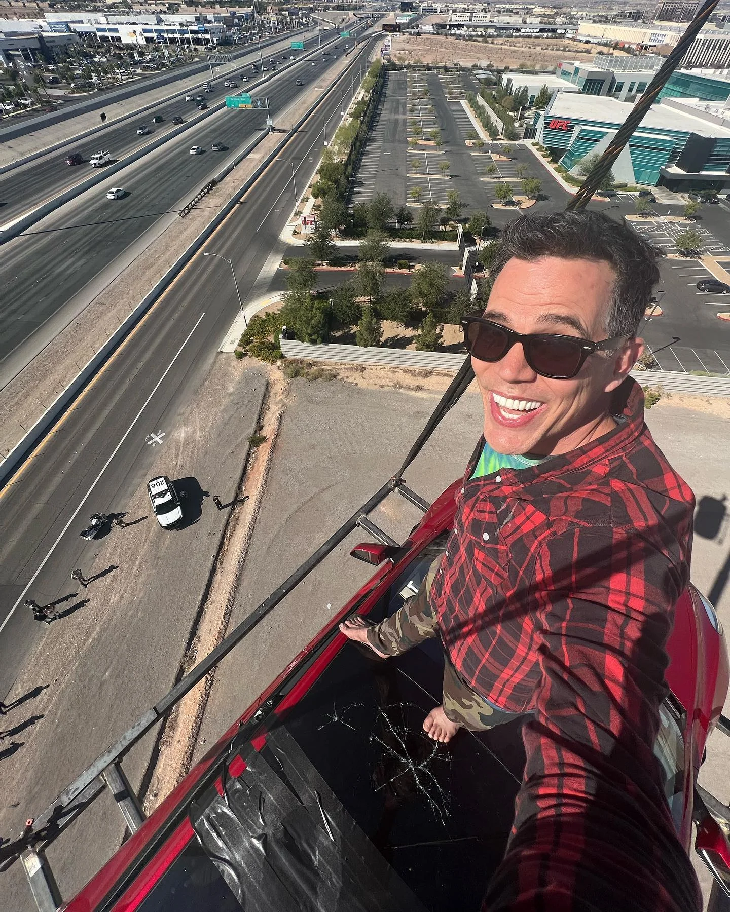 Steve-O craned his Tesla Model Y 120ft in the air outside the UFC HQ in Vegas to live in it and chaos ensued
