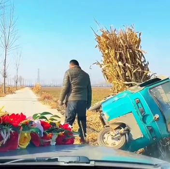 This man in China won the hearts of the internet when he tipped his vehicle sideways in order to save a couple’s wedding luck.