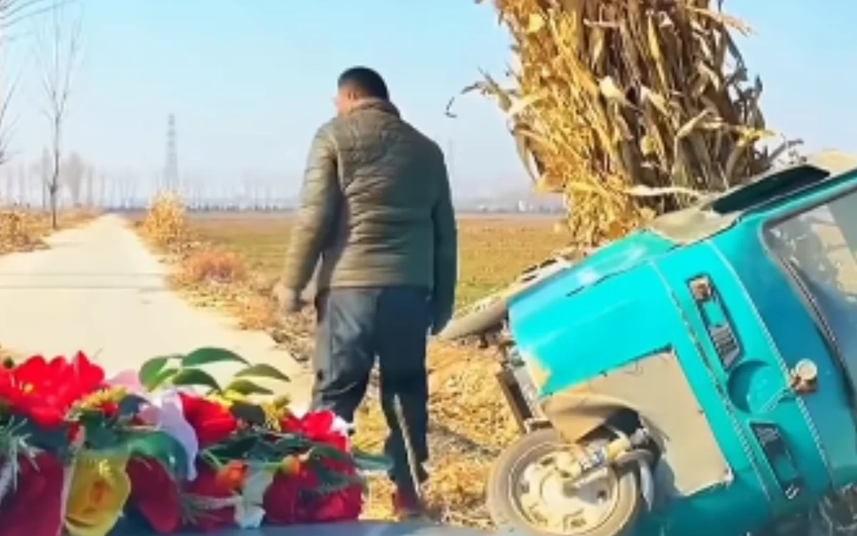 Stranger in China tips his own vehicle sideways to save a couple's wedding luck on a narrow road