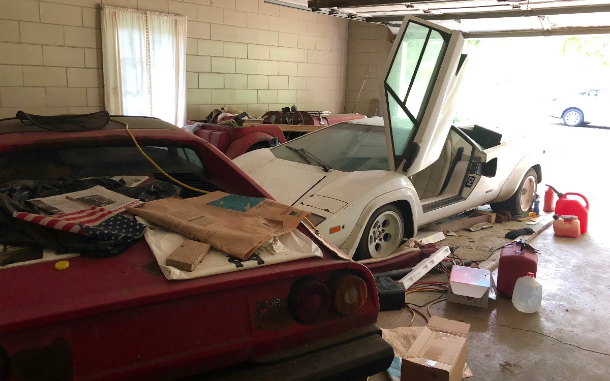 The Countach had been under a sheet while the Ferrari had been tucked up into a back corner.