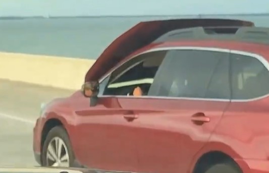 A Subaru driver recently navigated a dangerous mechanical failure on a Florida road after his hood flew up and blocked his vision on the Tampa bridge.