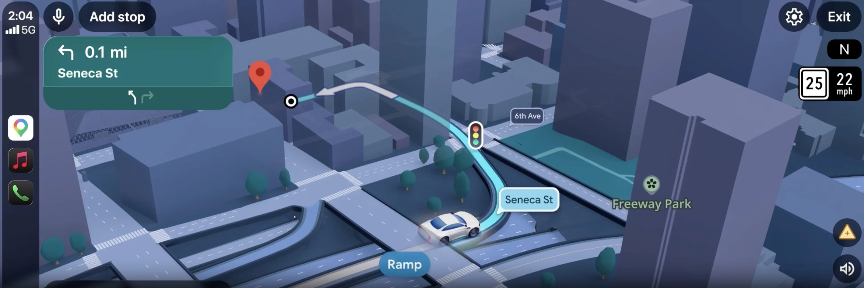 The map now features enhanced road details and see-through renderings of buildings to help you see upcoming turns and lane changes in advance.