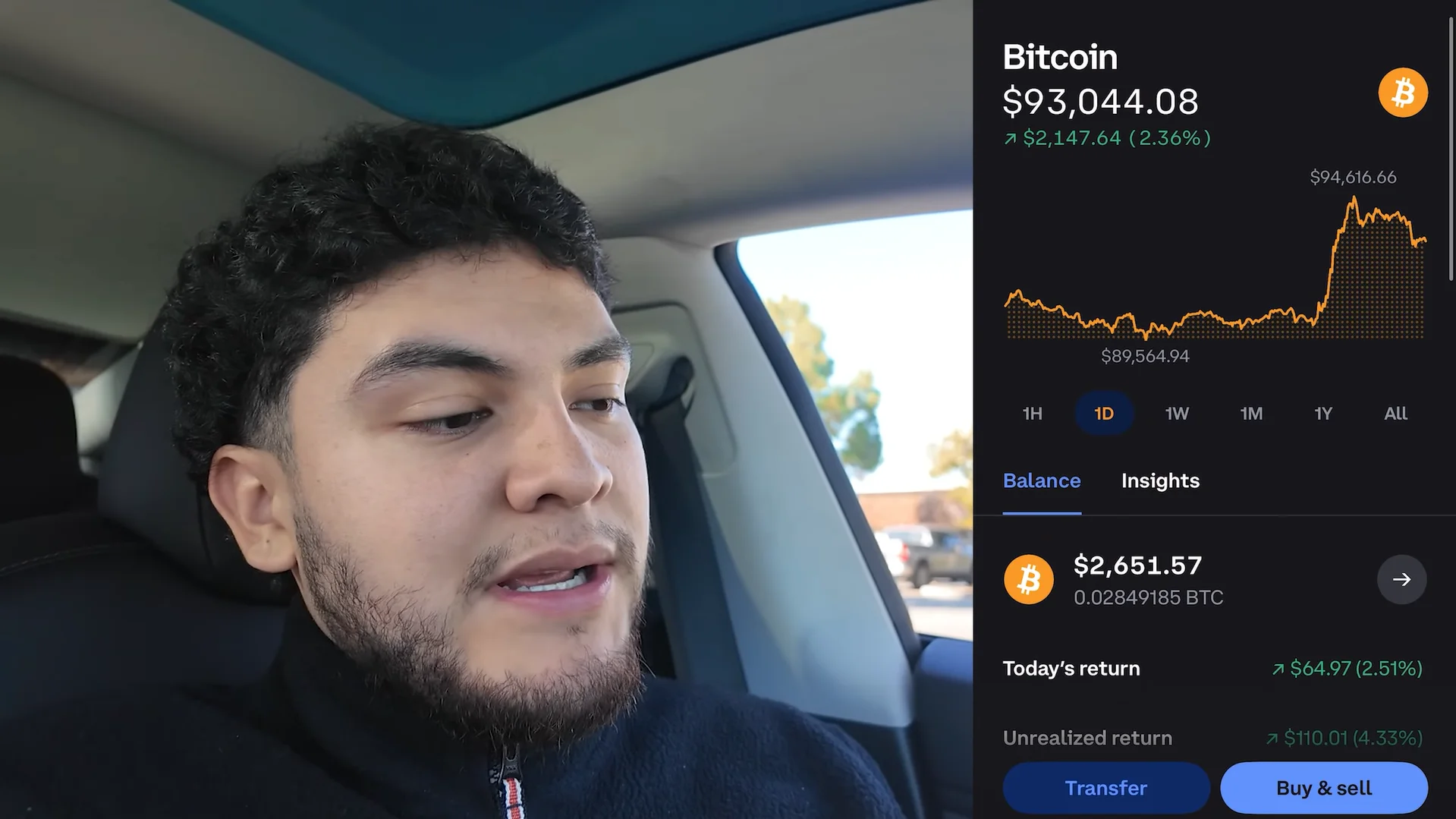 Bitcoin had been trading at approximately $93,000 that day, but he explained that his returns had previously been much higher before the market cooled off.