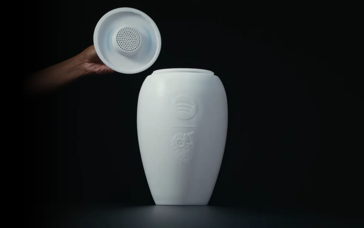Liquid Death and Spotify just dropped a funeral urn with a built-in speaker so you can party into the afterlife
