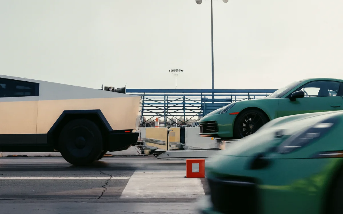 As they set off, the Porsche 911 pulls ahead; however, halfway through the race, out of nowhere, the Cybertruck pulls ahead, with its sports car in tow.