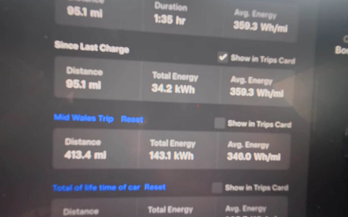 By the end of the trip, the Tesla Model 3 Performance had covered 413 miles, averaging 346 Wh/mile.