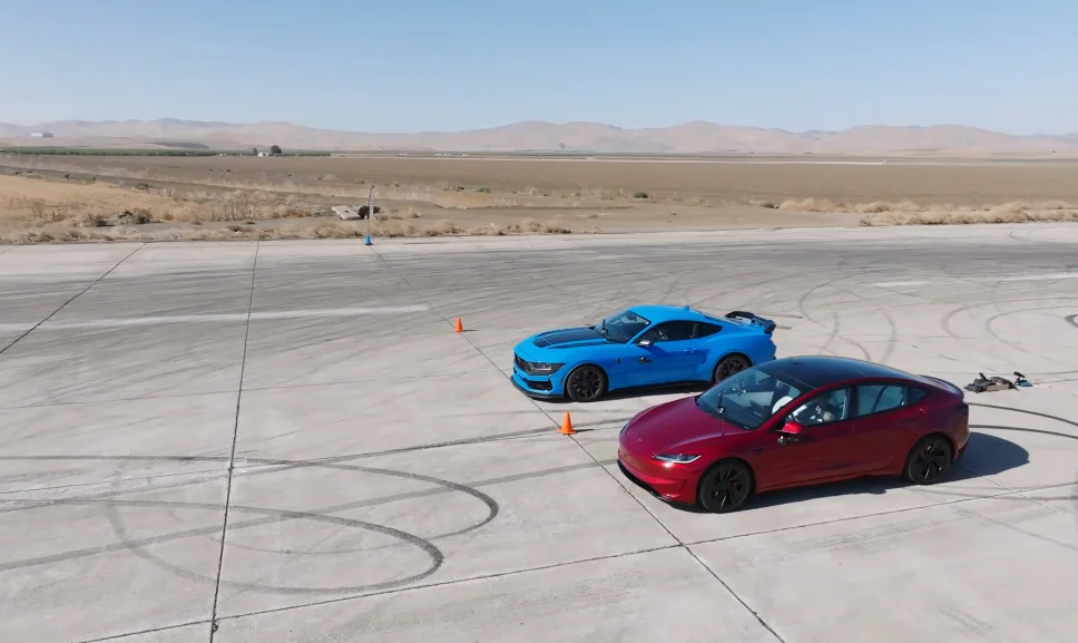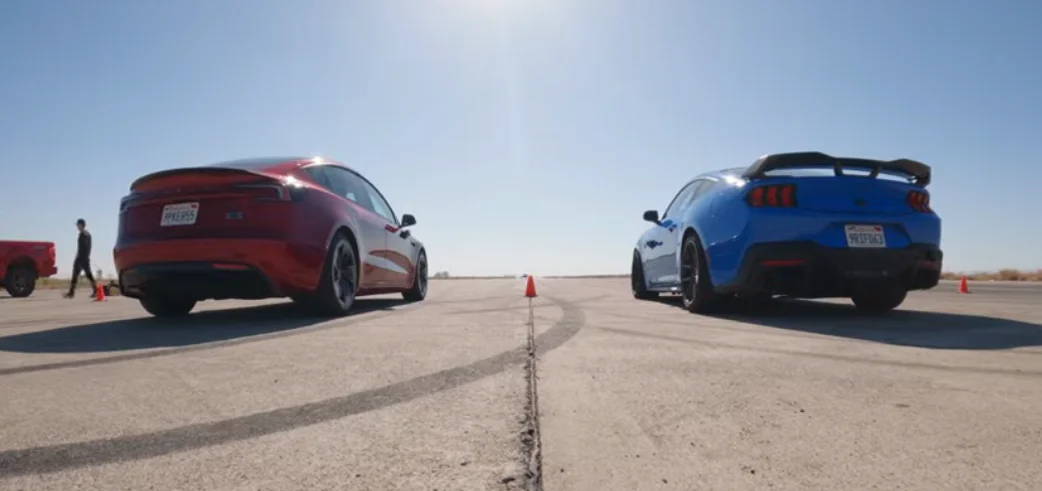 This Tesla Model 3 and Ford Mustang Dark Horse went head-to-head