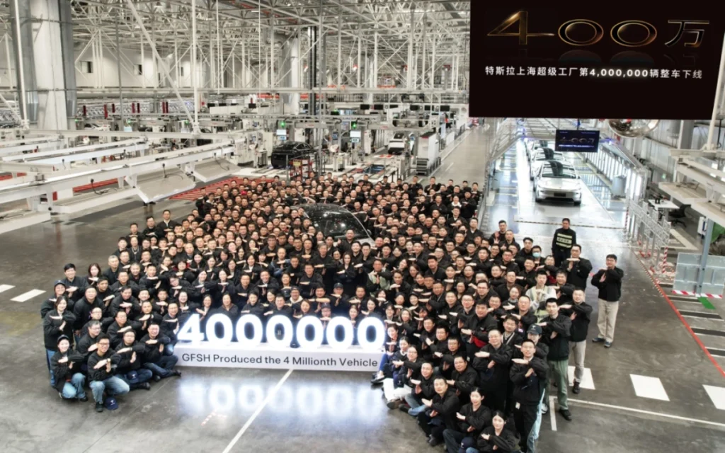 December 2025: Tesla celebrated its 4 millionth vehicle in the Shanghai Gigafactory, a Starlight Gold Model Y L